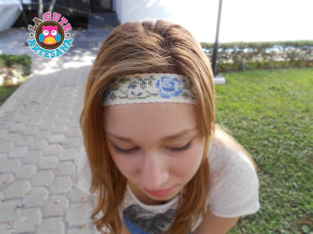 Estoy muy orgullosa de mostrarles este proyecto, aunque empecé a bordar siendo muy joven (9 años) ahora a mis 29 (Oigan!!! tengo 20 años de carrera artística!!) a veces me pasa lo que a muchas señoras, creo que sé que le gusta a la juventud y a veces me falla, pero este no fue el caso, bordé esta linda banda para el cabello y le pedí a una hermosa jovencita que modelara mi primera banda. Y sí que tomamos algunas fotos se las muestro a ver que les parece, al final les comparto el gráfico.
