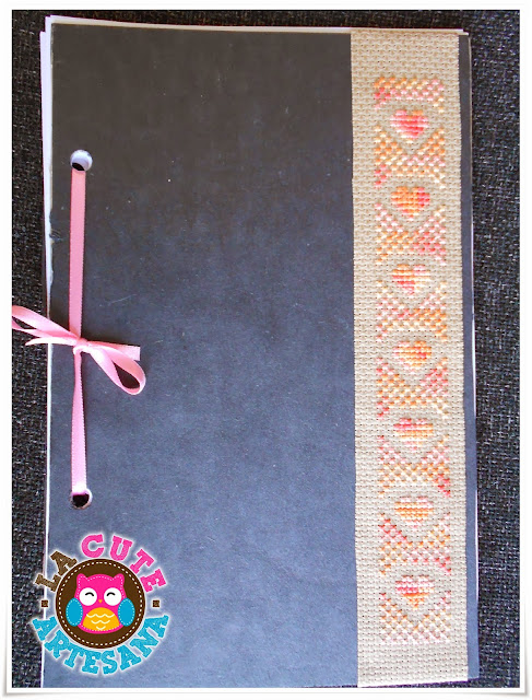 Que si que és? Bueno, pues resulta que siempre me han gustado los libros de Edgar Allan Poe en especial el de Berenice, lo pueden leer y escuchar aqui , tanto me gustaba que en la prepa lo elegimos para representarla en una materia y todo y mi amiga así se llama!!! Así que le imprimí el cuento y lo encuaderné en cartón forrado de cartulina negra y le puse la aplicación de cuadrillé caqui bordada con el hilo de variations 4120