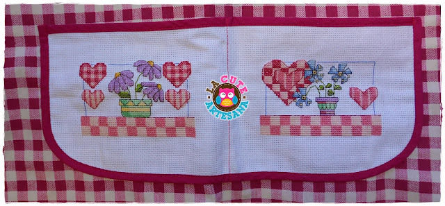 Ya había visto esos corazones y flores en sus macetitas desde hace rato (marzo) en Vida em Ponto Cruz, y cuando vi el mandil en la página de bordando y creando dije este es para mí!!! Y miren que bien quedaron combinaditos. Son seis diseños los de los gráficos y los quero hacer todos, el martes les muestro otro de ellos que ya hice (ahorita mismo lo escribiré para que no me pase lo de hoy).