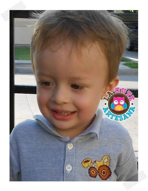 Vuelvo a ver la imagen del dompe y me fascina, bueno debo decirles que no solo me gustó a mi, mi hijo al verla preguntó si era para él, cuanod le expliqué que lo iba  aregalar se molestó un poco y me dijo que él quería una, que él se la iba a bordar que le diera los hilos, así que no me quedó mas remedio que salir corriendo por una camiseta para mi pillo. Es la primera vez que me pide algo y me dio mucho gusto poder bordarle la máquina que tanto le gusta. Aunque me gustaba mucho el contraste del amarillo con el rojo decidí hacerle su playera en gris porque ya tiene muchas camisetas rojas (aqui nomas un ejemplo y otro), para variarle un poco.