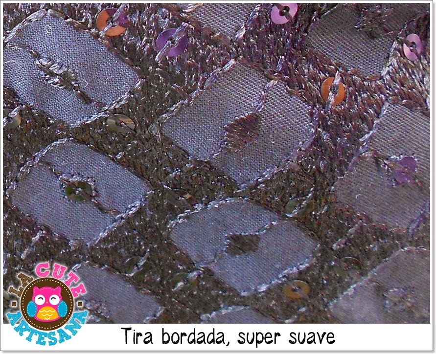 El cojín está complementado por detrás con una tela que en letrerito de la parisina decía Tira bordada, si no llama así pues entonces no lo sé. Lo que sí es que aunque un poco cara se ve muy buena calidad y me gustó mucho para complementar este diseño.