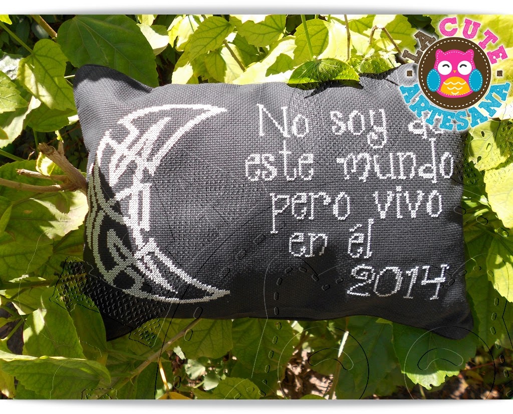 La frase es una que le gusta a la chica en cuestión no crean que yo la impuse. Y el 2014? ese sí se lo metí yo a fuerzas, resulta que hice 2 gráficos distintos, el de la luna y luego la frase y en mi libreta cuadriculada según yo hice la planeación de como quedaría distribuido pero a la hora de la verdad me dio flojera buscar la libreta y lo hice a ojo, erro!!! si ya sé que siempre me sale mal a ojo pero ese día en especial estaba muy cansada. Total que necesitaba algo en la esquina inferior derecha para compensar el diseño en su totalidad y no le quise poner su nombre así que pues dije en vista de que es un regalo de cumpleaños le puse el año.