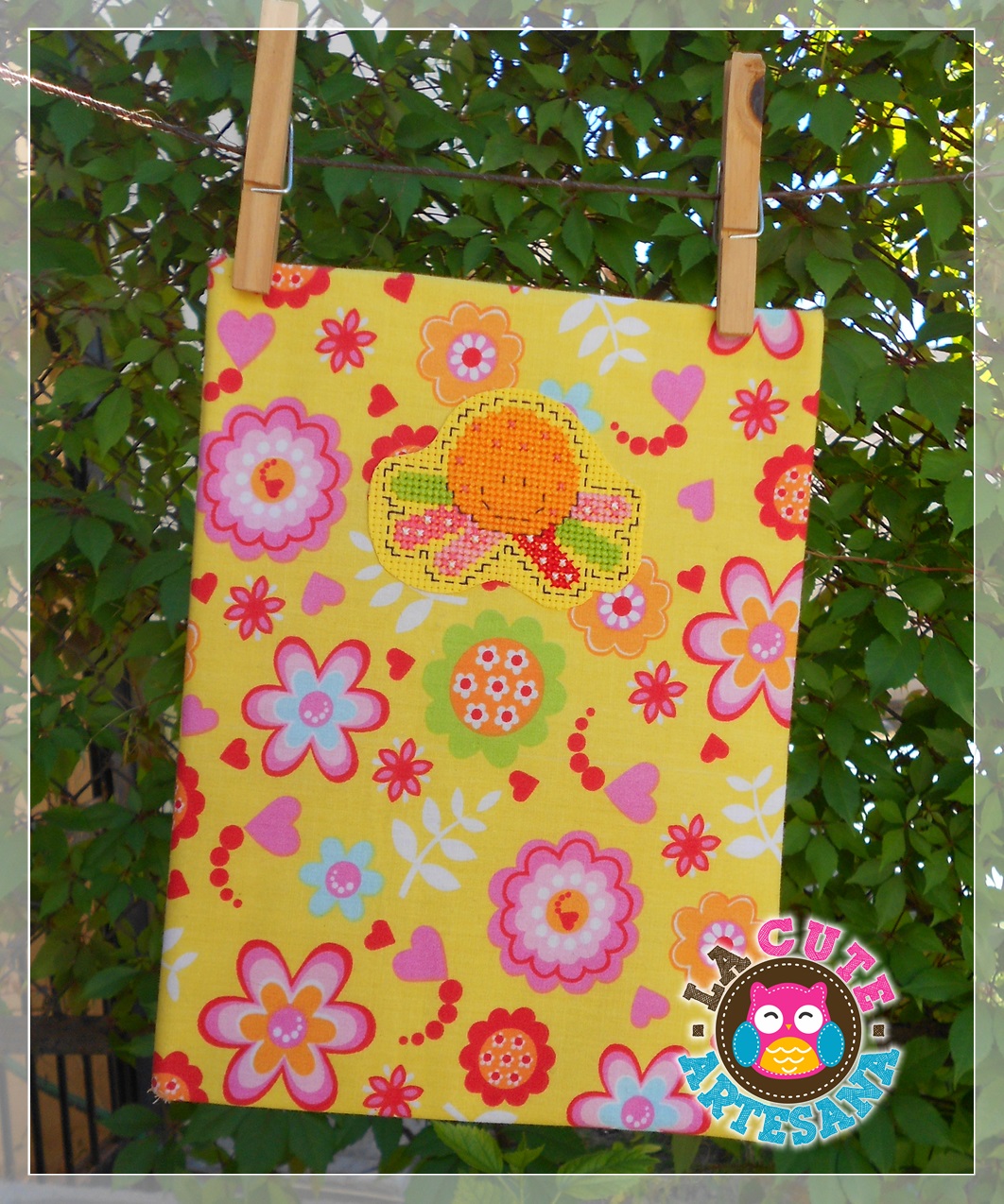 Y por último esta libretita que hice con tela colorida de algodón que me regaló maria elena, con cuadrillé amarillo qu etengo tan poquito que apenas si le dejé margen al momento de bordar el pulpo, se suponía que era mi libreta para mi curso de corte y confección y sí si fui a 3 clases, pero no me gustó y me salí. ¿Qué no me gustó? Pues hacer ropa jajajaj yo quiero aprender a coser otras cosas pero no, ropa no me llama para nada la atención y un día falte a una clase y luego a otra y ya no quise ir.