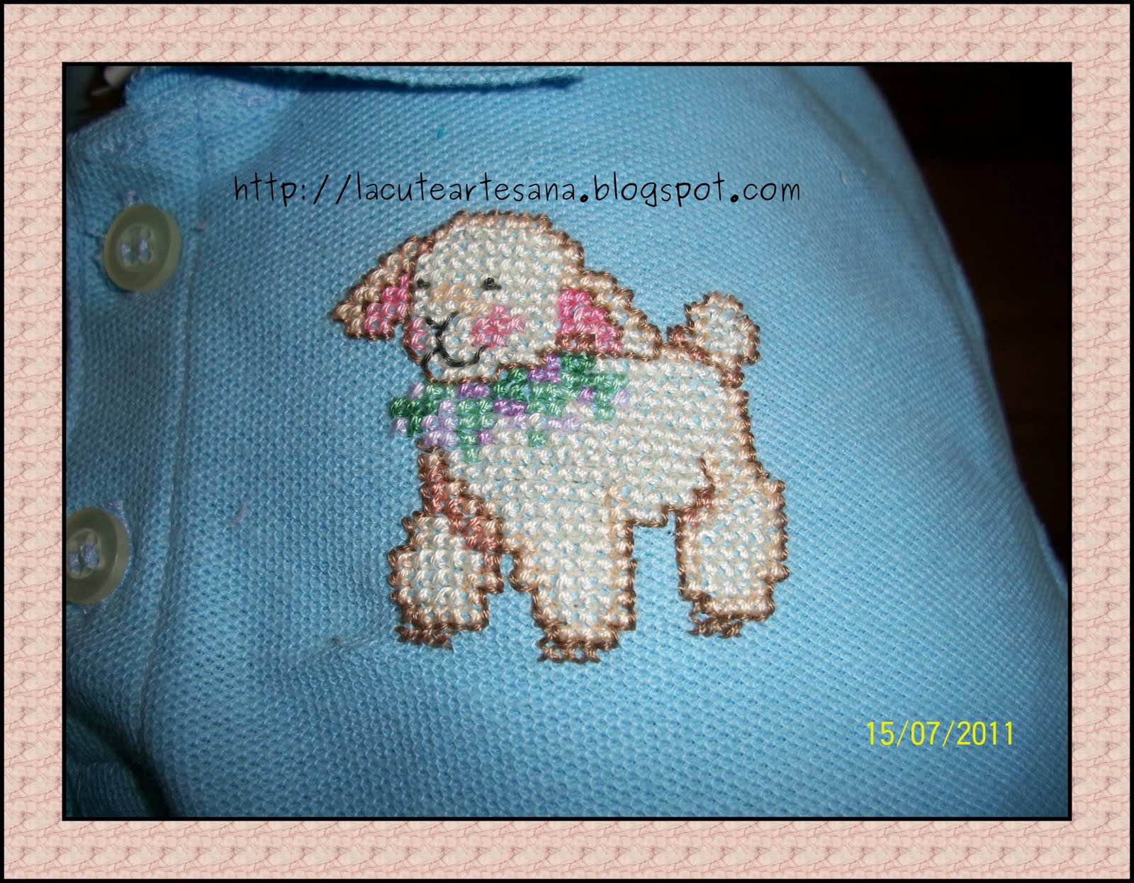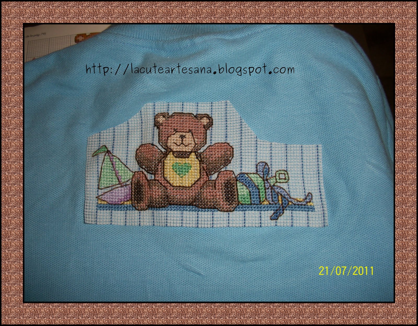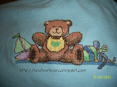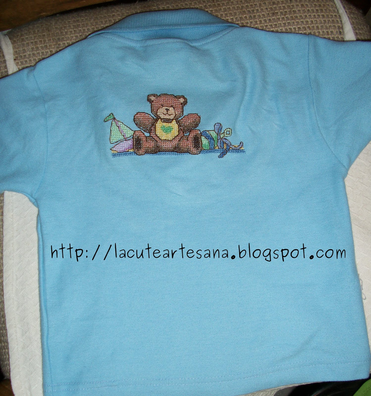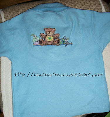 Esta camiseta bordada en punto de cruz ya esta viajando en estos momentos hacia la Paz BCS, ya quiero ver al niño con esa playerita!!!